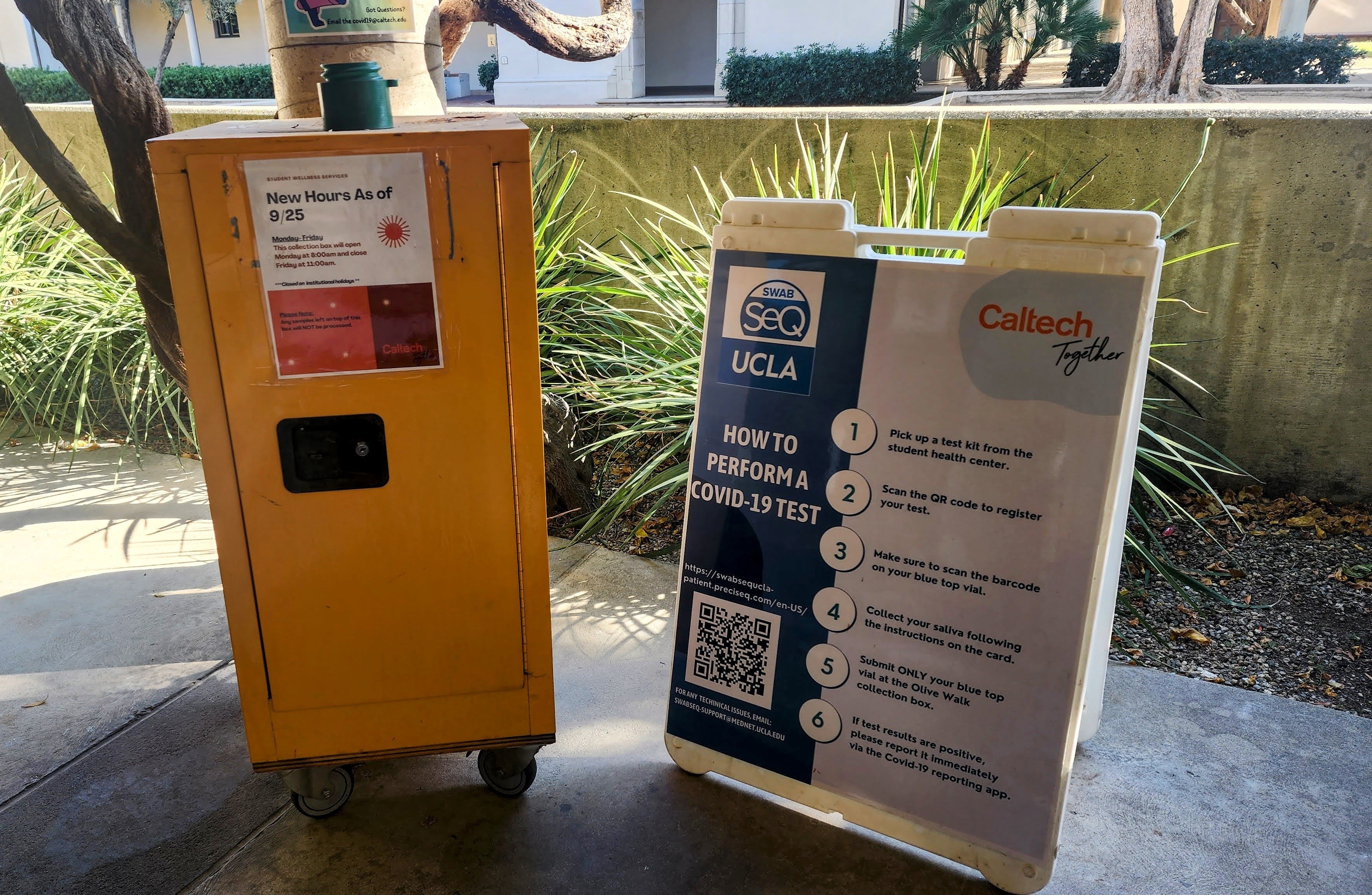 Caltech students, faculty, postdocs, and staff members working on campus may participate in a free, voluntary community surveillance testing program, administered by UCLA SwabSEQ. This is a COVID-19 PCR diagnostic test. The program is supported by a California Department of Public Health grant to UCLA and is independent from Caltech.